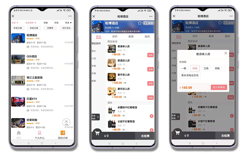 解决酒店、KTV、民宿、宾馆等客房外卖扫码点餐方案,可以支持公众号下单、小程序下单、二维码下单多方渠道入口。