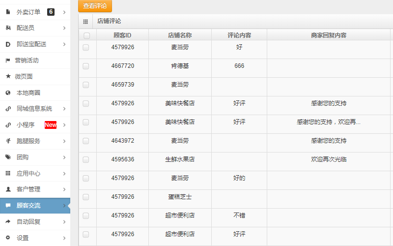 顾客可以点评,后台可以对评价进行管理归纳。