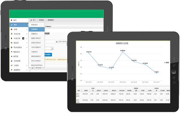 订单统计、商品销量统计、配送统计让您对经营状况了如指掌。